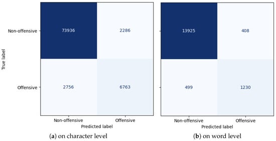 The need for automated offensive language detection emerged early in the Internet’s development. Spertus [38] used an automated decision tree generator to classify feedback from comments on web pages into “flame” and “ok” messages. Initially, research primarily focused on English language hate speech detection [39,40,41]. These early methods treated messages as bag-of-words representations, ignoring token positions, and relied on manually crafted features (e.g., word n-grams, TF-IDF, character, or word counts) for classifying text fragments as offensive or non-offensive.