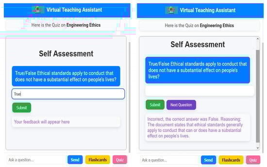 In addition to these technical challenges, it is important to acknowledge a key limitation in the evaluation of the VirtualTA system. The results produced by the system are not quantified, and establishing deterministic accuracy for flashcards, quizzes, chatbot responses, and other components is challenging without classroom evaluation. Quantitative analysis is necessary to assess the quality of outcomes, but accurately measuring impact and perceived benefits can only be achieved through practical implementation in a classroom setting. This underscores the need for further research and development to incorporate comprehensive evaluation metrics and real-world testing.