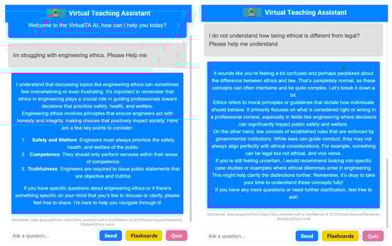 Furthermore, the convergence of LLMs, chatbots, and web platforms has been instrumental in redefining pedagogical methods. Here, web-hosted chatbots, powered by LLMs, can simulate ethical dilemmas, guide reflections, and provide instant feedback, ensuring that future engineers not only excel in their technical prowess but also uphold the ethical standards of their profession. However, the effectiveness of VTAs in supporting students’ learning needs in these diverse fields, where multi-modal data plays a significant role, remains an area ripe for exploration. The potential of VTAs to enhance learning outcomes across a wide range of disciplines and learning formats underscores the need for further research and development in this growing field.