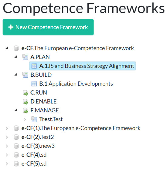 User interface of the KM-EP QBLM competence framework manager.