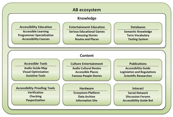 - AB Project Team. Accessibility Ecosystem. Available online: http://ab.math.bas.bg/ecosystem (accessed on 1 April 2024).