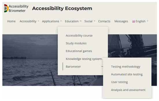 Navigation in an ecosystem has a leading role in the planning stage, as it is related to the convenience of visitors with a large volume of content available. On the other hand, accessibility requires a simplified model and maximum link descriptions. Figure 5 presents the main menu with short link labels and an optimized thematic structure.