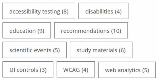The idea of the ecosystem is to support both ordinary users and people with professional interests in ICT. Numerous resources in English on digital accessibility exist, but for many, they are out of reach for reasons such as language barrier, low level of digital skills, etc. A project of the Inclusive Design Research Centre at OCAD University is considered in [29]. It proposes a theoretical strategy for digital accessibility, which is a broader view of regional or national level government regulations called “The Accessibility Ecosystem”. In the domain of inclusive education, the “Ecosystem of accessible digital content and tools” [30] presents a toolkit, tutorials, and implementations. Solutions for the implementation of information systems, practices, and tools for learning are presented in Ref. [31].