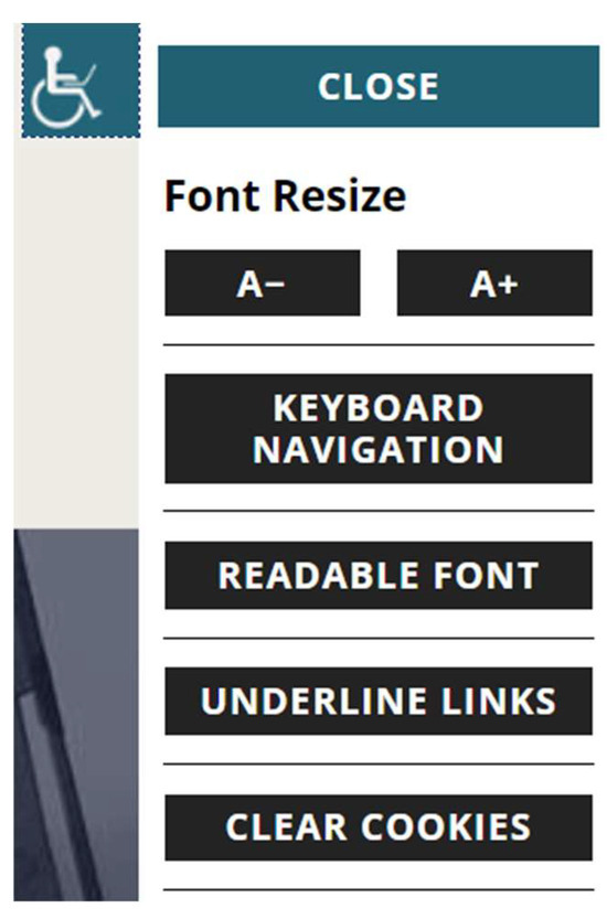 The AB ecosystem aims to achieve a high degree of customization, with the added accessibility plugin WP Accessibility Helper providing the second of these ways via an accessibility panel (see Figure 9), and the intended structure of modules, menu, and elements aim to achieve of accessibility and in the first way mentioned above.