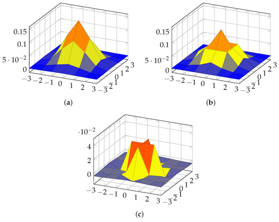 In general, a good approximation for digital filters [32,33] should be capable of (i) demanding low computational complexity and (ii) retaining the meaningful mathematical properties of the exact filter [34]. For this, we adopt the following design requirements for the sought 2D Gaussian filter approximation:
