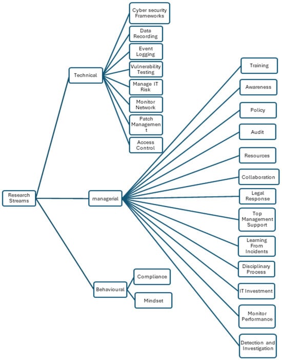 This review identified critical factors and managerial practices in three research streams: technical, managerial and behavioural, as elaborated in Table 1. Therefore, considering the findings shown in Table 1, critical factors in the three research streams are reported in Figure 4. These critical factors identified for cybercrime mitigation are essential for an effective strategy to mitigate a cyber incident and provide an effective response.