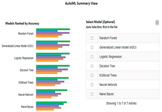 In the second experiment, KNIME, a versatile and user-friendly AutoML tool, was utilized to replicate the process conducted in Experiment 1 and validate the findings. KNIME’s comprehensive features and intuitive interface facilitated a streamlined and efficient workflow for the ASD detection task, which is shown in Figure 9.