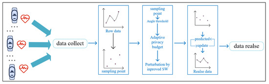 Wearable Devices LDP: Kim et al. [16] proposed a privacy-preserving aggregation algorithm based on LDP. This algorithm identifies key points from the original data, adaptively adds random noise to these points, and linearly connects the noisy key point values to reconstruct data curves. Although Kim et al.’s algorithm can reconstruct data flows, it suffers from significant errors due to excessive noise and an unreasonable data curve reconstruction method. Li et al. [17] improved upon this algorithm by integrating the concept of random response with LDP and adaptively adjusting the noise magnitude based on the characteristics of the original data. However, Li’s algorithm still uses a linear reconstruction method for predicting non-sampled points. Despite proposed enhancements using interpolation and fitting, the improvement remains limited. Additionally, Li’s privacy budget allocation strategy employs a uniform allocation scheme, which does not fully address the protection needs of critical data, thereby posing a risk of important data leakage. Zhang et al. [18] proposed the RE-Dpocpor algorithm, which utilizes the Laplace noise mechanism combined with adaptive sampling, filtering, and budget allocation algorithms to publish differential privacy-protected real-time health data collected over w consecutive days. However, because this scheme relies on information from future timestamps, it is not applicable to infinite data streams. Tu et al. [2] proposed a mean data publishing algorithm for wearable devices that offers high availability for this purpose. However, the algorithm requires users to calculate the mean global sensitivity in advance. As a result, when dealing with different big data statistics, the global sensitivity must be recalculated, leading to reduced availability. Furthermore, calculating global sensitivity necessitates the use of the entire dataset, which is not practical for the continuous data streams generated by wearable devices. Although the aforementioned privacy protection measures for wearable devices can safeguard data flow, they each have limitations. There remains a gap in privacy protection for unlimited data streams from wearable devices when utilizing local differential privacy techniques.