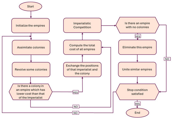 Flowchart of the Imperialist Competitive Algorithm [20].
