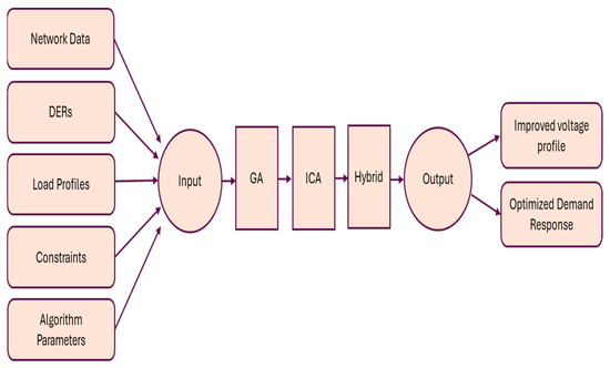 Evolutionary algorithms are advanced optimization techniques that are used to ease complex optimization problems related to microgrid management. ICA and GA have shown great potential in facing these challenges, which are able to solve difficult optimization problems with different constraints and multiple objectives. In this paper, ICA and GA are applied individually and then combined to create a hybrid algorithm that has all the features of both algorithms to minimize voltage regulation in microgrids through load response strategies. The reduction of voltage deviations and the improvement of overall microgrid performance are to be evaluated, which can have significant impacts on the design and management of future microgrid systems and provide insights on how to use advanced optimization algorithms to improve microgrid stability and efficiency [3]. Reducing voltage fluctuations improves the microgrids’ operation by making the system more stable and lowering the chances of power issues or breakdowns. It can increase energy efficiency by reducing transmission losses. Keeping voltage stable also ensures better power quality, which is an important issue for delicate electronics and machinery. Additionally, stable voltage helps equipment last longer by reducing wear and tear, which can lower maintenance costs. Less voltage variation also means less power losses in the distribution process [4,5].