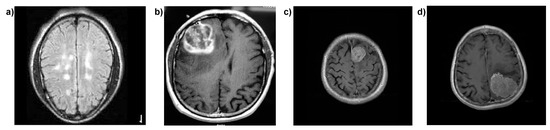 - Assam, M.; Kanwal, H.; Farooq, U.; Shah, S.K.; Mehmood, A.; Choi, G.S. An efficient classification of MRI brain images. IEEE Access 2021, 9, 33313–33322. [Google Scholar] [CrossRef]