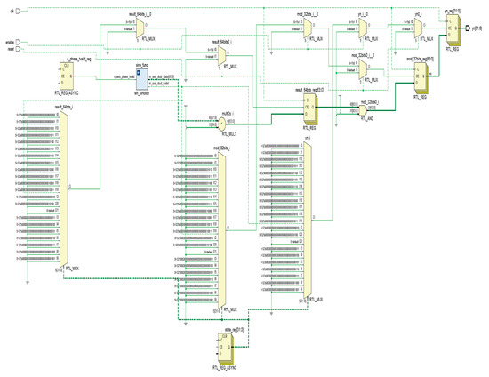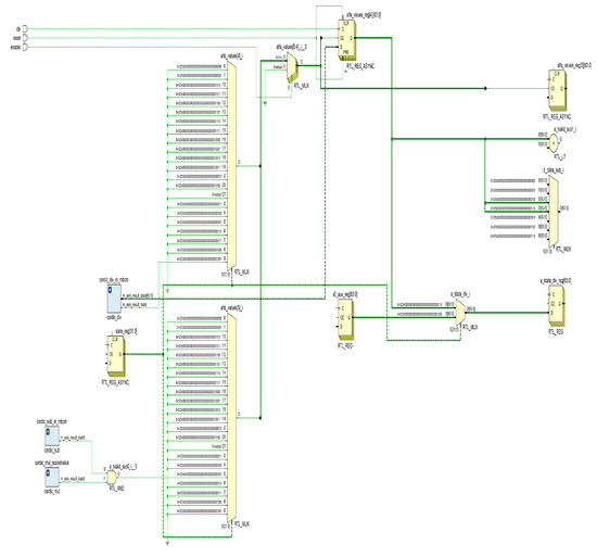 Finally, an additional scaling process is applied using a similar factor of , and the resulting cipher sequence is represented in 32 bits via a modulo operation (). The output of the instance is then converted back to float using the module and passed to the bcm function. Figure 10 and Figure 11 illustrate some of the functional blocks that represent the proposed module.