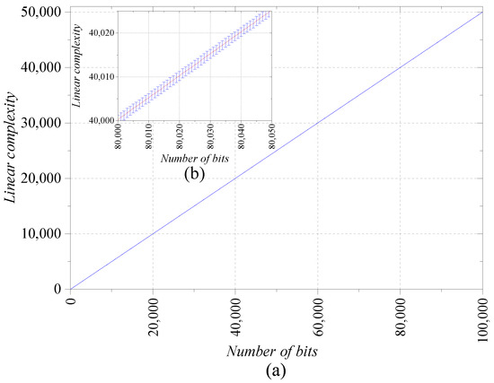 To determine the computational complexity of the proposed CPRNG, the basic operations defined in Algorithm 1 were identified. The algorithm performs arithmetic operations, logical operations, and function calls. The arithmetic operations include addition, subtraction, multiplication, and division. The algorithm calls the function , which has an algorithmic complexity of since it only performs a comparison and a multiplication. The function also has an algorithmic complexity of , as it only involves a comparison and a multiplication. Therefore, the overall complexity of the algorithm is .