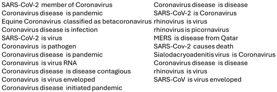Fourth, we normalize the order after the relations “is” and “causes” of terms and their modifiers. In particular, the order within the predicate was standardized to “term modifier”. For example, “COVID-19 is disease infectious”. If the term was actually the “modifier term” itself, then that order was retained by putting a dash in between the two in the target ordering. For example, “COVID-19 is respiratory-disease”.