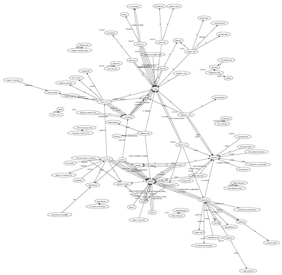 - Domingo-Fernández, D.; Baksi, S.; Schultz, B.; Gadiya, Y.; Karki, R.; Raschka, T.; Ebeling, C.; Hofmann-Apitius, M.; Kodamullil, A.T. COVID-19 Knowledge Graph: A computable, multi-modal, cause-and-effect knowledge model of COVID-19 pathophysiology. Bioinformatics 2021, 37, 1332–1334. [Google Scholar] [CrossRef]