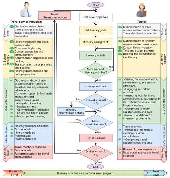 The following recommendations are provided for tourism companies and tourists using the proposed GAI-assisted travel framework. Travel companies—such as tour operators and travel agents—should develop a robust strategy for GAI adoption. This strategy should include plans for investing in cutting-edge information technologies as well as improving the digital and AI proficiency of managers and employees. The delay in digital transformation, particularly within the tourism sector, poses significant challenges. According to the most recent Digital Economy and Society Index (DESI) report on digital competitiveness in EU Member States [41], only 38.90% of enterprises utilize cloud computing, 14.22% use big data, and a mere 8.00% implement artificial intelligence (AI), significantly falling short of the EU 2030 targets of 75% for each technology. Addressing these gaps in the tourism industry requires a strategic focus on long-term training programs that improve AI literacy, data analytics, technical skills, customer service, adaptability, and ethical considerations related to digital innovation.