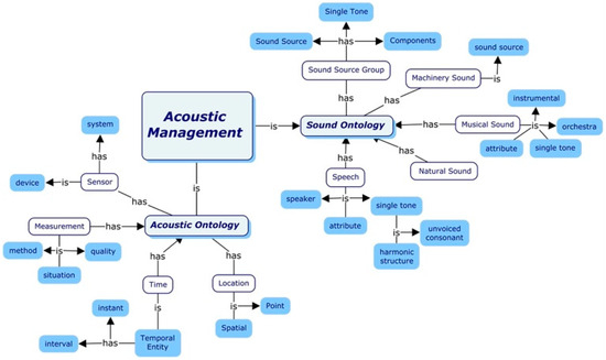 Ref. [16] presents an ontology driving architecture (ODA) for ReM-AM. Particularly, this ODA is defined by two ontology layers. It uses a sound ontology and an acoustic ontology for the CIM layer (Figure 2) as domain information to integrate the terms and aspects required for acoustic management. The PIM layer (Figure 3) contains ontologies related to computational implementation such as SOA capabilities, a task description of data analytics [15], and autonomic computing [17].