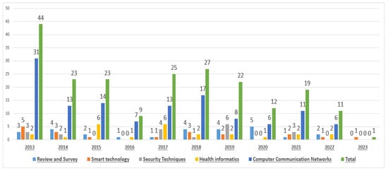 In this effort, papers were filtered extensively before being classified into five groups based on the proposed methodologies and future research plans on Standardisation. The categories were the following: (1) review and surveys, (2) computer communication networks standard, (3) smart technology standard, (4) security techniques standard, and (5) health informatics standard. Subsequently, further subcategorization was performed according to the authors’ writing and presentation of the articles to readers.