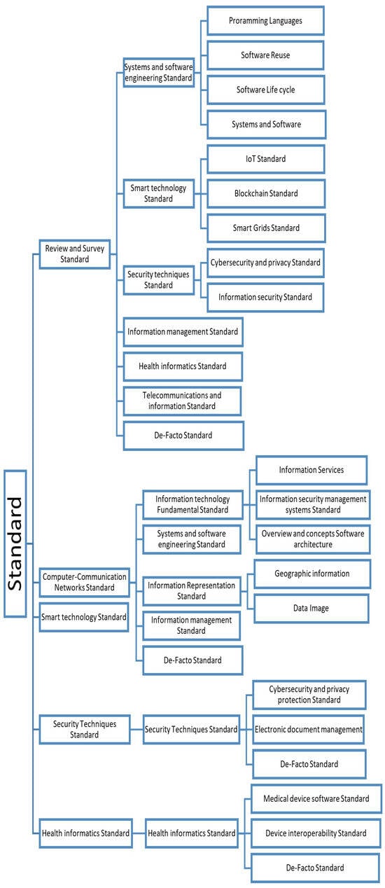 We created a Standardisation taxonomy representation of the current literature in light of comprehensive Standardisation produced in recent years, as shown in Figure 6. The presented approach consisted of several Standardisations, including systems and software engineering standard, computer-communication networks standard, smart technology standard, security techniques standard, and health informatics standard. explaining the proposed system in detail with the help of a block diagram.