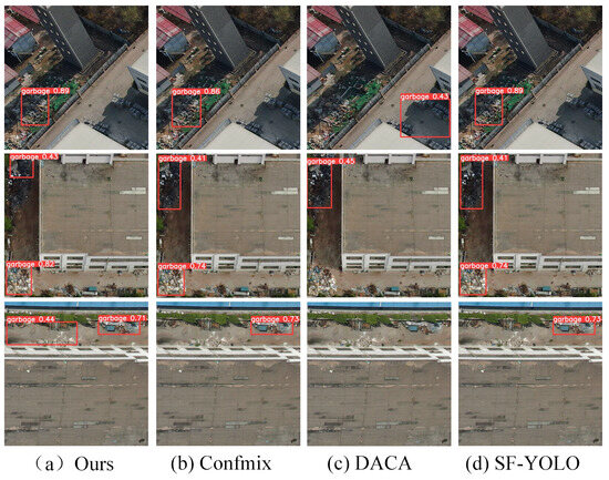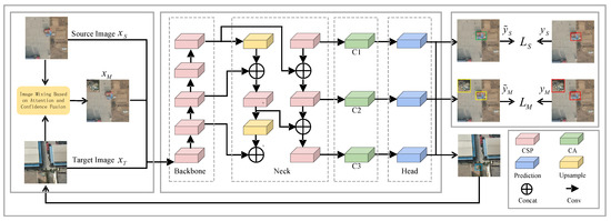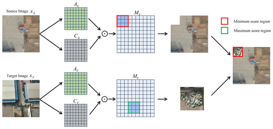 By employing a sliding window technique with a window size of , the regions with the lowest and highest scores can be identified. The highest-scoring region from the target image is then substituted into the lowest-scoring region of the source image, which facilitates information exchange between the source and target domains. This approach mitigates domain discrepancies, thereby enhancing the model’s adaptability to the target domain and improving its generalization capability. By comprehensively integrating confidence and attention, the importance and feature relevance of different regions within the mixed image can be effectively evaluated, resulting in more accurate mixed images. Even in the absence of explicit targets, the attention scores across different regions of the image can guide the mixing process, thereby enhancing the quality of the mixed image.