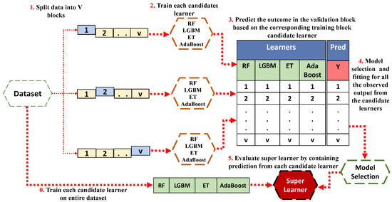 The term “super learner model (SL)” does not refer to a specific machine learning model; rather, it represents an ensemble learning technique known for its ability to combine multiple base learning algorithms to yield a more accurate and robust predictive model [58,59]. The core idea behind SL modeling is to leverage the diversity of different models to enhance predictive performance.