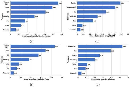 - Comprehensive Feature Analysis: Utilization of seven critical physiological, lifestyle, and nutritional features (including fetal sex, GA, GDM, smoking, vitamin B12, folate, and anemia) in multiple experiments. This study evaluates the performance of four individual models: Extra Trees (ETs), Random Forest (RF), AdaBoost, and LightGBM) as base learners, alongside an assessment of the SL model.