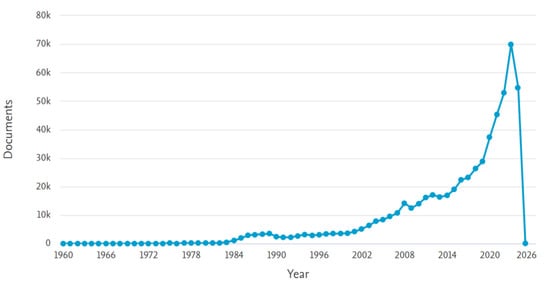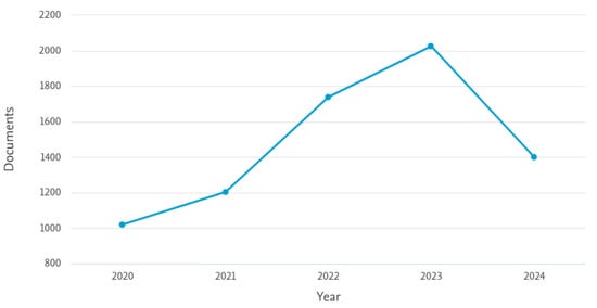 This section describes how the integration and impact of AI-based DSSs in the sectors have been studied. The methodology includes an exhaustive review of the literature and is supported by detailed case studies, hence providing theoretical and practical insights into the subject of the research. In this study, cases are selected longitudinally for investigation, and comprehensive data analysis is conducted to answer research questions regarding accuracy, transparency, and trust in AI-driven decision-making processes. There are nearly 600,000 papers on artificial intelligence in the Scopus database; the number of articles considerably increased only after 2019, as shown in Figure 1, so this paper will consider that period.