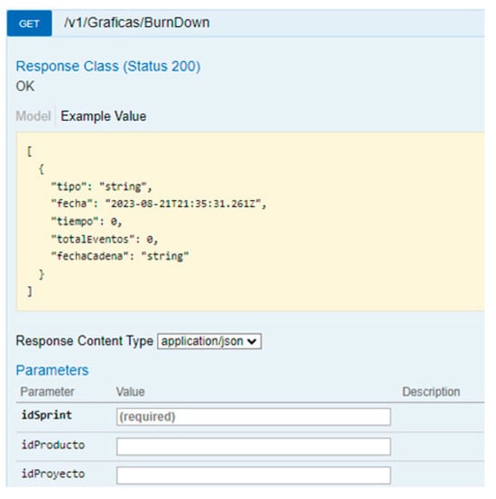 The SprintId, ProductId, and ProjectId must be provided to access the method that provides the data for the burndown chart. These parameters can be obtained from the API with the appropriate permissions (Figure 3).