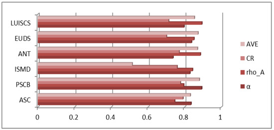 All key reliability and validity indicators, including AVE, CR, Cronbach’s alpha, and rho_A, were above the recommended thresholds, confirming good convergent validity and high internal consistency of the constructs [60] (Figure 2).