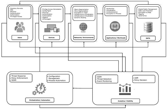 Zero Trust Network Access (ZTNA) is a security framework that operates on the principle of “never trust, always verify.” Unlike traditional security models that assume everything inside an organization’s network can be trusted, ZTNA assumes that threats can exist both inside and outside the network [54]. Therefore, strict verification is required for every user and device attempting to access resources. Figure 2 provides a detailed explanation of how a ZTNA works. The figure shows that it is a security framework that assumes no inherent trust in any user or device seeking access to network resources. It emphasizes the verification of user identities, strict access control, and continuous monitoring. ZTNA relies on technologies like multi-factor authentication (MFA), identity and access management (IAM), network segmentation, and micro-segmentation to enforce security controls [55].