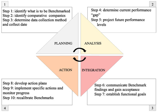 - Balm, G.J. Benchmarking: A Practitioner’s Guide for Becoming and Staying Best of the Best, 2nd ed.; Quality & Productivity Management: New York, NY, USA, 1992. [Google Scholar]