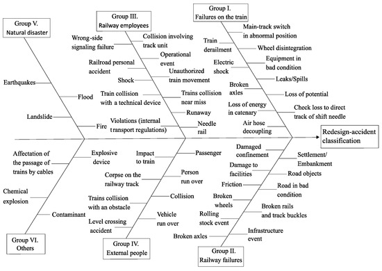 This study groups all railway risks to classify them according to their general description or primary definition (Figure 7). It is necessary to understand accidents in a more specific way because this leads to the evolution of the sustainability of rail system safety policies.