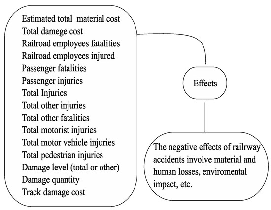 After analyzing preventive and corrective maintenance, an excellent way to encourage investment in preventing railway accidents is to analyze the effects on the economy, environment, and living beings. Figure 9 shows the relevant sections. The analysis can estimate the economic and human impact caused by a train accident. Also, it will allow researchers to determine the effect on immediate and future environments.