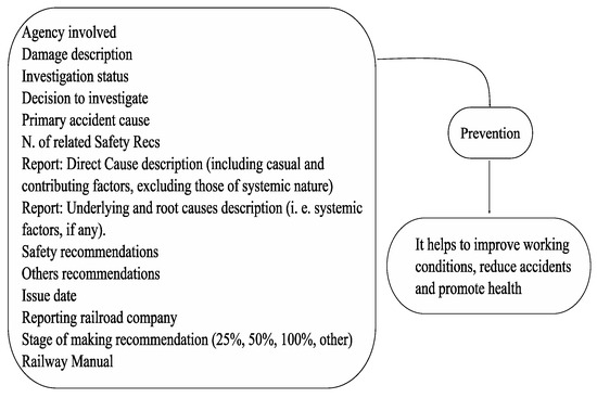 The restructuring of the database presents a standardized classification of accidents, as well as specific content. The detailed and standardized content allows for the adaptation of monitoring systems (track condition, signaling, rolling stock) [40]. By identifying patterns and risk areas, corrective and preventive actions for railway accidents can be proposed. The analytical capacity of the database will allow the use of new technologies and algorithms, contributing to safety in the railway system.