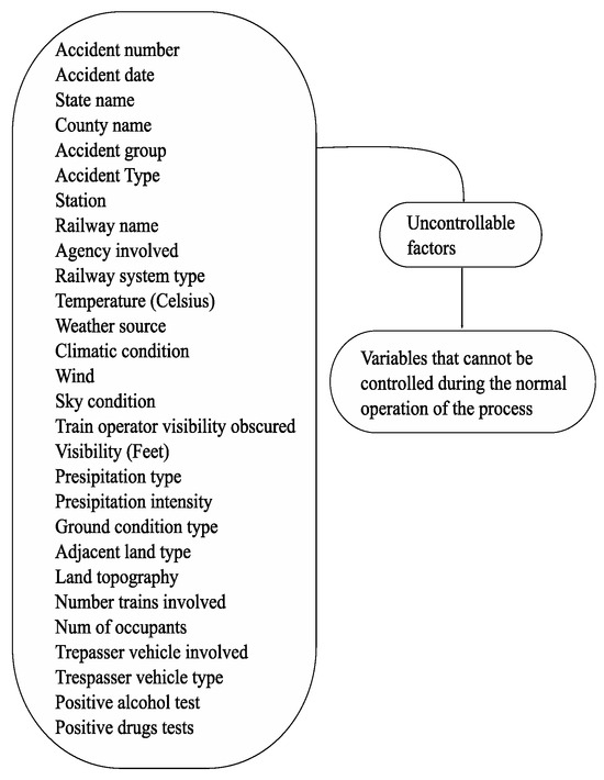 Figure 11 displays the non-controllable factors, which are the variables that do not depend on the control of the railway agencies or the conditions of the track or the train, such as weather conditions or accidents caused by external people. This comprehensive database reassures us that we have considered all possible factors in our safety analysis.