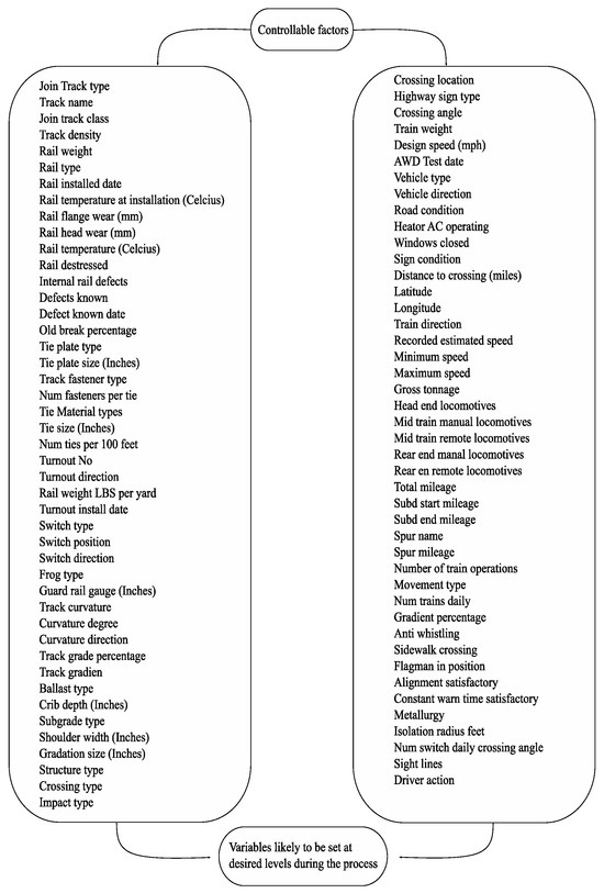Figure 12 shows the controllable factors recorded during the accident; this particular classification depends entirely on the track and train managers. Examples include the speed of the train, the track conditions, the weight of the train, etc. The complete information in the databases allows for the prediction and prevention of railway accidents.
