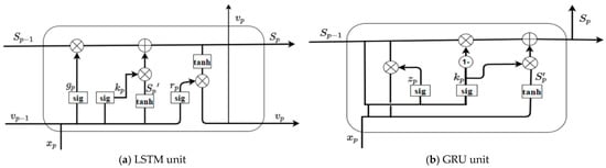 Although RNNs are effective in performing various prediction tasks, they nevertheless have a problem of exploding and vanishing gradients. To solve this problem, other types of RNNs such as long-short term memory (LSTM) and gated recurrent unit (GRU) have been designed. More specifically, LSTM (illustrated in Figure 1a) operates as defined in (10); GRU (illustrated in Figure 1b) operates as defined in (11).