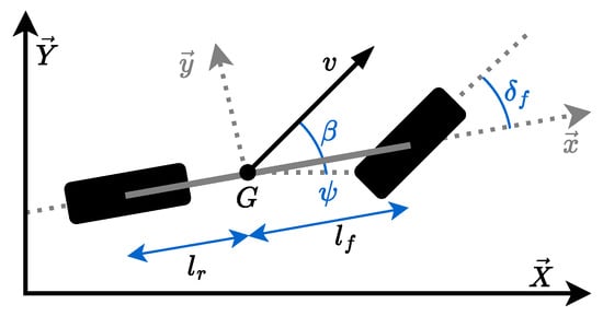 Knowing the slip angle at the center of gravity , the next position (, ) can be predicted using the following equations: