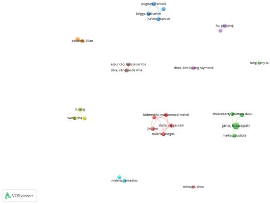 Another notable team is formed by Jana, Biswapati, and Chakraborty, who also form a strong collaborative network. This group might focus on data protection or data-sharing frameworks, as their collaboration suggests an ongoing exchange of ideas and methodologies that could contribute to the development of more robust and secure data management practices. This team focuses on developing advanced data hiding and image-processing techniques to enhance multimedia security [37,38,39].