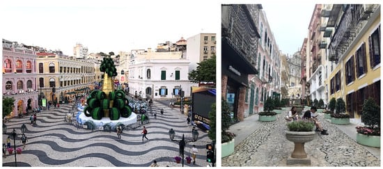- Wang, Y.; Yamaguchi, K.; Kawasaki, M. Urban revitalization in highly localized squares: A case study of the Historic Centre of Macau. Urban Des. Int. 2018, 23, 34–53. [Google Scholar] [CrossRef]