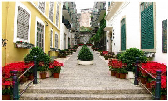 - Ye, A.; Liu, S. An exploration of cultural heritage trail development in the historic center of Macau. In East Asian Architecture in Globalization; Xu, S., Aoki, N., Vieira Amaro, B., Eds.; Springer International Publishing: Cham, Switzerland, 2017; pp. 407–421. [Google Scholar] [CrossRef]