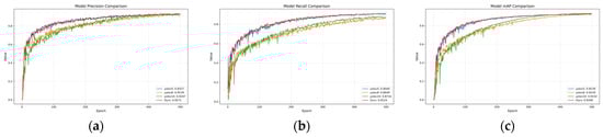 Performance Comparison of YOLO Models: (a) Precision Comparison of YOLO Models; (b) Recall Comparison of YOLO Models; (c) mAP Comparison of YOLO Models.