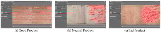 Figure 13 demonstrates the application scenario of the real-time detection system in the detection of nodules on electrolytic cathode copper plates. The system interface is clear and user-friendly, providing a real-time display of detection results and quality assessments, allowing production personnel to promptly understand the quality status of the copper plates.