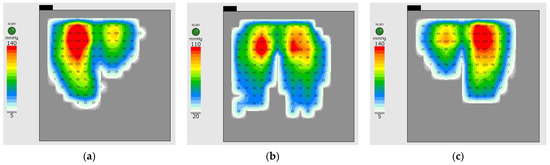 During data acquisition, the pressure distribution from the 256 sensors was recorded in real time as heatmaps, which visualized the variation in seat pressure over time. These heatmaps served as the primary data source for the subsequent analysis, where machine learning classifiers were applied to identify and differentiate the three leg-crossing postures based on the collected pressure data.