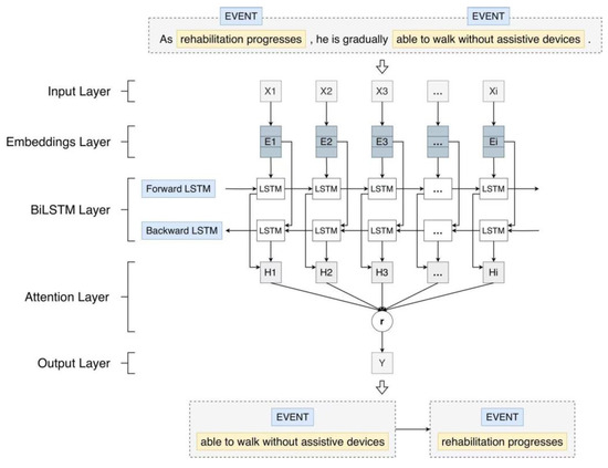 - Alfattni, G.; Peek, N.; Nenadic, G. Attention-based Bidirectional Long Short-Term Memory Networks for Extracting Temporal Relationships from Clinical Discharge Summaries. J. Biomed. Inform. 2021, 123, 103915. [Google Scholar] [CrossRef] [PubMed]