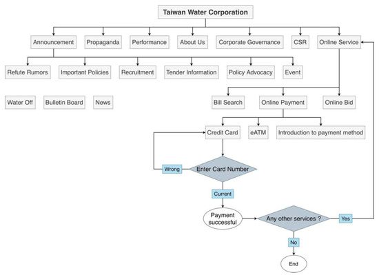 An example dialogue tree about the payment by credit card for the Taiwan Water Company.
