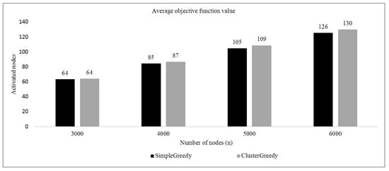 Kempe et al. [15] introduced the SimpleGreedy algorithm to solve the problem of maximizing the influence. This algorithm uses the concept of marginal gain, which is the influence spread increase obtained by adding a node to the seed set. The SimpleGreedy algorithm employs a greedy approach by selecting the node with the highest marginal gain over the network and including it in the seed set at each iteration. This process is repeated k times [16]. Given the spread function , the marginal gain of a given node u can be computed by , which Kempe et al. [15] estimated with Monte Carlo simulations. This algorithm is known to have a poor running time performance. That inefficiency has motivated several alternative approaches and motivated our study to reduce the computation time.
