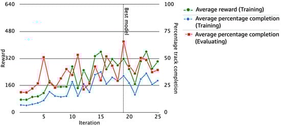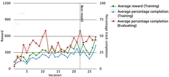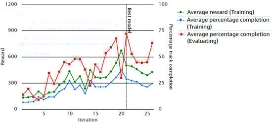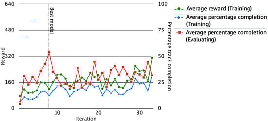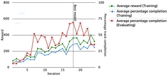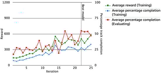 - AWS DeepRacer Reward Function Examples. AWS DeepRacer. Available online: https://docs.aws.amazon.com/deepracer/latest/developerguide/deepracer-reward-function-examples.html#deepracer-reward-function-example-3 (accessed on 26 December 2023).