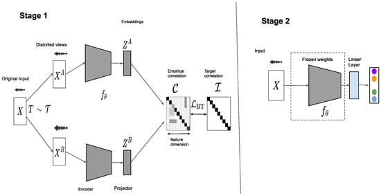 - Zbontar, J.; Jing, L.; Misra, I.; LeCun, Y.; Deny, S. Barlow twins: Self-supervised learning via redundancy reduction. In Proceedings of the International Conference on Machine Learning, Virtual Event, 18–24 July 2021; pp. 12310–12320. [Google Scholar]