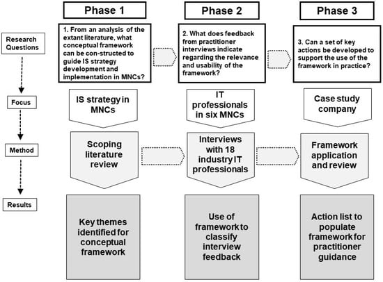Although there are a number of models in the extant literature that focus on either IS strategy development or IS strategy implementation, very few look at both in harness, particularly in the context of MNCs. Few of the existing IS strategy frameworks include any implementation considerations, such as timing, detailed actions, deliverables, specific roles, and responsibilities. Peppard et al. [9] observed that very little work had been conducted focusing on IS strategy as a micro or social process, and there remains little guidance on when to execute a step or a specific phase in strategy implementation, with approaches tending to be generic, with no specification of required deliverable(s). The literature search failed to find any integrated model or framework for IS development and implementation in MNCs, and this research aims to fill this gap in the literature and in practice by providing a framework that encompasses and combines IS strategy development and implementation.